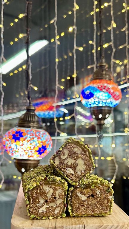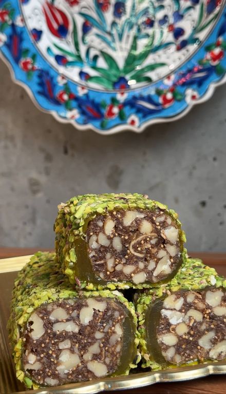 Лукум инжир/ грецкий орех с фисташкой - это сладость, которая сочетает в себе нежный вкус лукума с инжиром и хрустящим грецким орехом. Лукум из инжира и грецкого ореха с фисташкой предлагает уникальное сочетание текстур и вкусов, создавая незабываемое удовольствие для ваших вкусовых рецепторов
