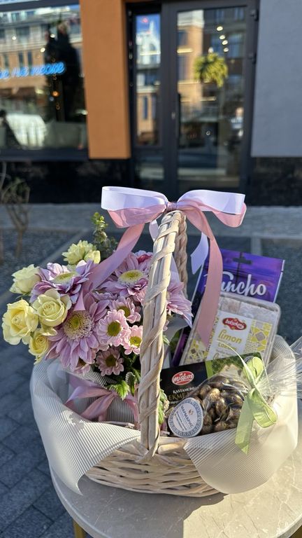 Стоимость корзины составляет от 3000-4500 руб., в зависимости от наполнения и цветов.