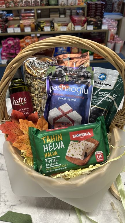 Подарочная корзина 16 на новый год 2700 руб. В корзину Состав: грецкий орех в капучино зимний чай, согревающий маслины вяленые с косточкой рахат лукум черная смородина оливковое масло кунжутная халва с фисташкой Состав: грецкий орех в капучино зимний чай, согревающий маслины вяленые с косточкой рахат лукум черная смородина оливковое масло кунжутная халва с фисташкой